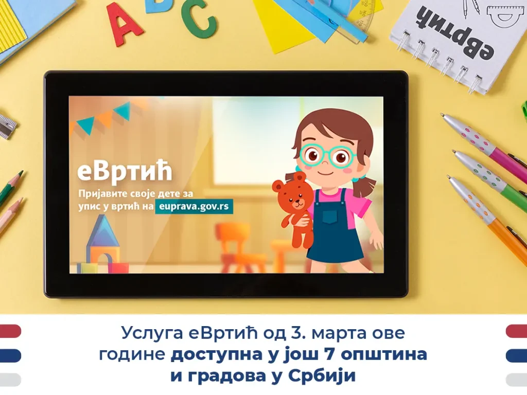 Услуга еВртић од 3. марта ове године доступна у још 7 општина и градова у Србији